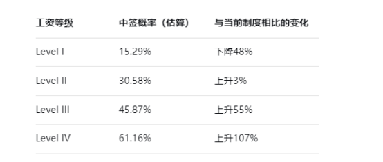 表:加权抽签制度下各工资等级的中签概率变化